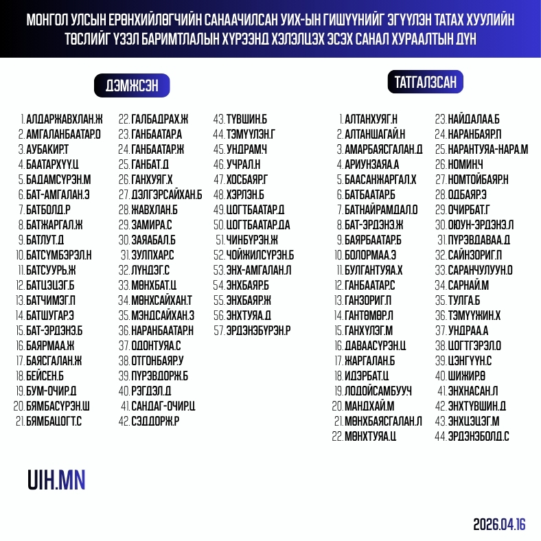 Улсын Их Хурлын 10-р сарын чуулганы нэгдсэн хуралдааны ирцийг худал мэдээлжээ