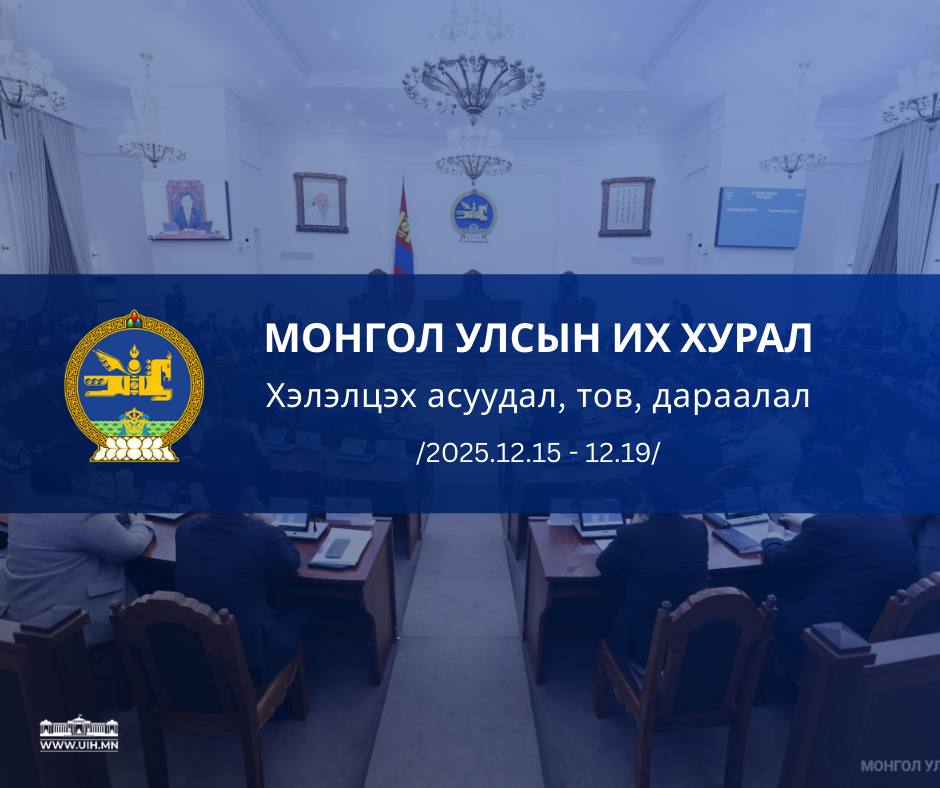 УЛСЫН ИХ ХУРЛЫН 2025 ОНЫ НАМРЫН ЭЭЛЖИТ ЧУУЛГАН: Хэлэлцэх асуудал, тов, дараалал 2025.12.15-12.19