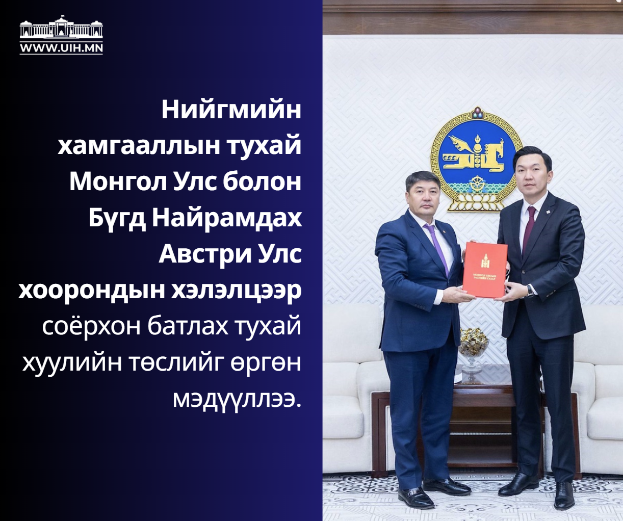 “Нийгмийн хамгааллын тухай Монгол Улс болон Бүгд Найрамдах Австри Улс хоорондын хэлэлцээр”-ийг соёрхон батлах тухай хуулийн төслийг өргөн мэдүүллээ