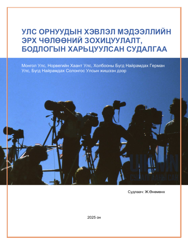 Улс орнуудын хэвлэл мэдээллийн эрх чөлөөний зохицуулалт, бодлогын харьцуулсан судалгаа (Монгол Улс, Норвегийн Хаант Улс, Холбооны Бүгд Найрамдах Герман Улс, Бүгд Найрамдах Солонгос Улсын жишээн дээр)