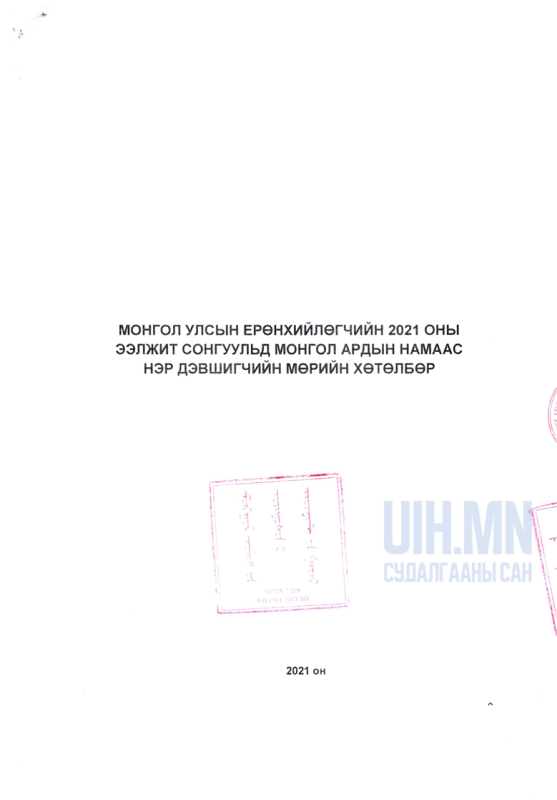 Монгол Улсын Ерөнхийлөгчийн 2021 оны ээлжит сонгуульд Монгол Ардын Намаас нэр дэвшигчийн мөрийн хөтөлбөр