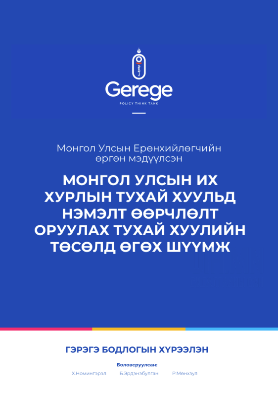 Монгол Улсын Ерөнхийлөгчийн өргөн мэдүүлсэн Монгол Улсын Их Хурлын тухай хуульд нэмэлт өөрчлөлт оруулах тухай хуулийн төсөлд өгөх шүүмж
